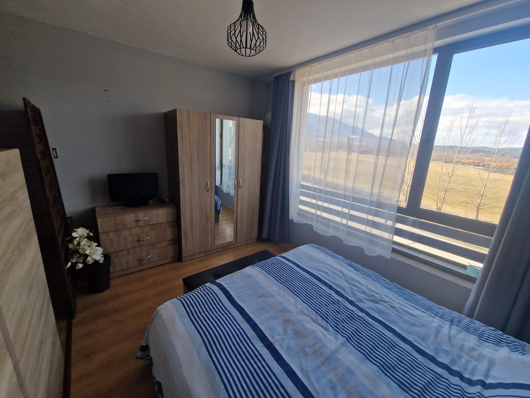 The property is ready for personal use as well as for rent. The property is facing southwest and has a view of the Pirin Mountains. It is located on the third floor with an area of 45 sq.m. The walls are painted with latex. The floors are laminated parquet and granite. The studio is fully furnished and equipped. The bathroom is fully finished and equipped.