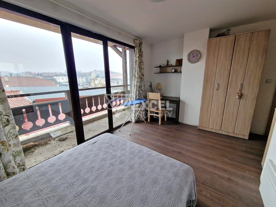 We are happy to present to your attention: a fully south-facing one-bedroom apartment for sale in Bansko! (87 sq.m + 5 sq.m basement) The property is located in a residential building with no maintenance fee, close to the city center and 2 minutes’ walk from the Billa store.
