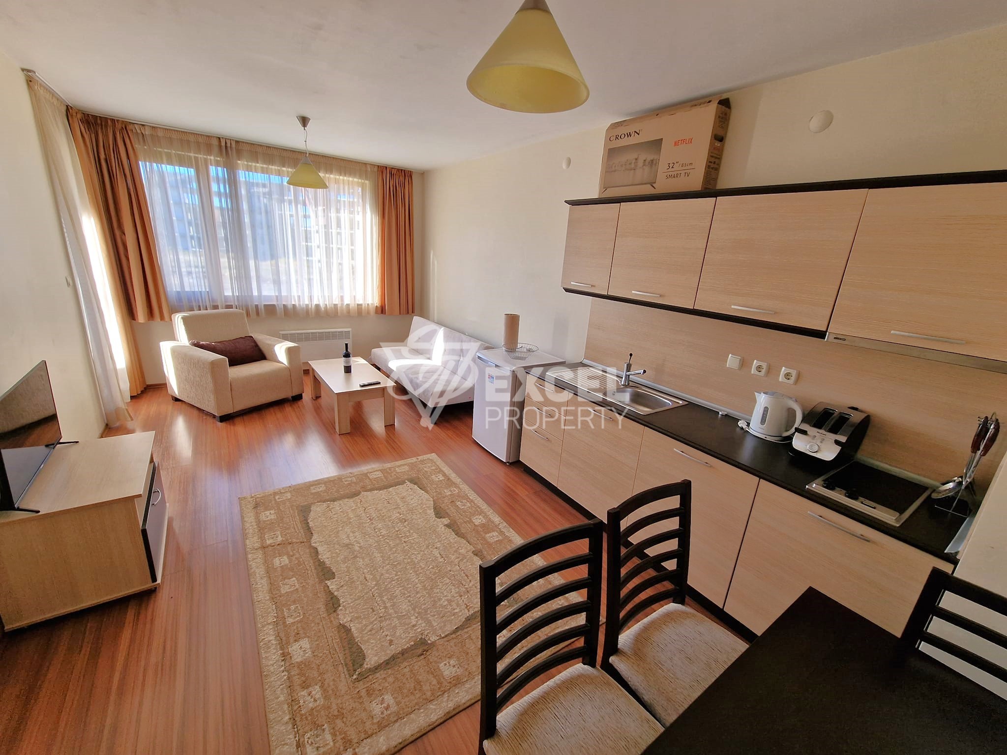 An attractive offer for a modernly furnished one-bedroom apartment at the foot of the Pirin Mountains, in the luxurious Hotel Regnum 5✱, located 400 m from the cable car and 900 m from the center of the city of Bansko.
