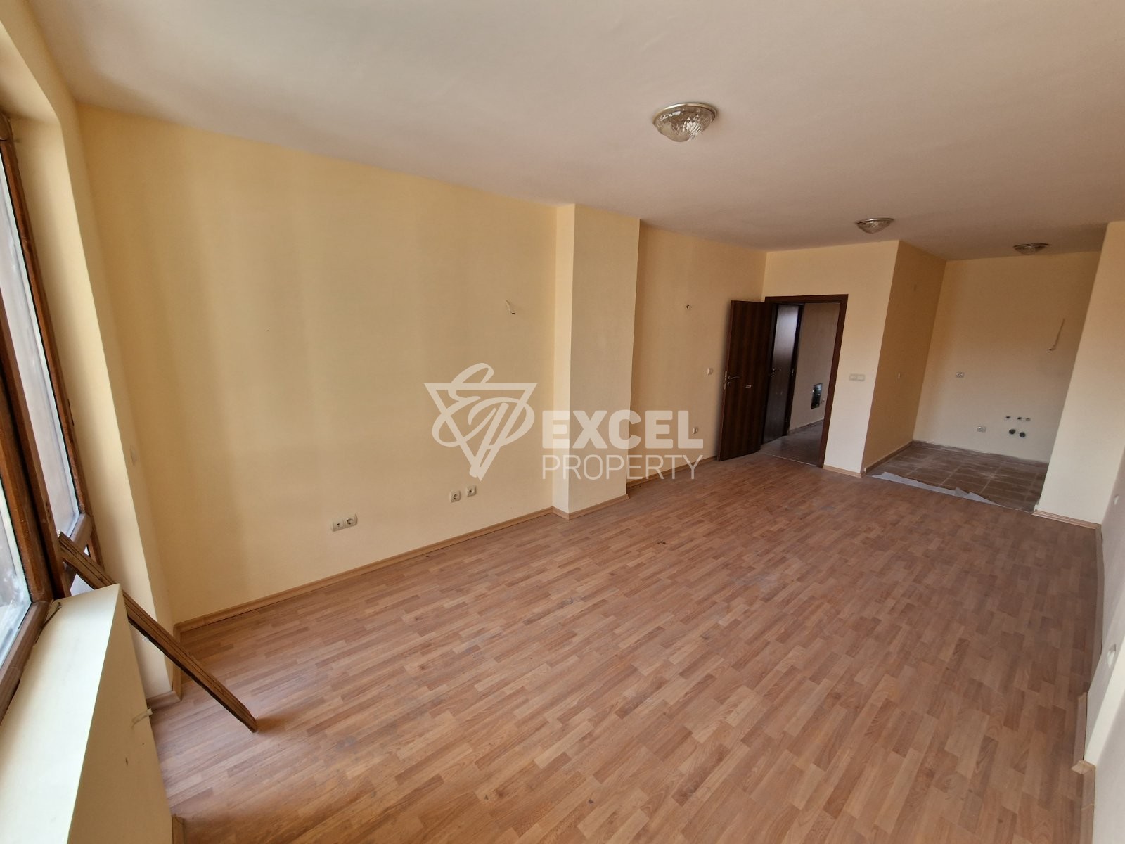 The apartment has an entrance hall, a spacious and bright living room with a kitchen area (sockets and connections are provided), a separate bedroom, a bathroom with a toilet and two terraces. The exposure of the property is south-east-west. The apartment is located on the second residential floor of a four-story building. Electric heating is provided.