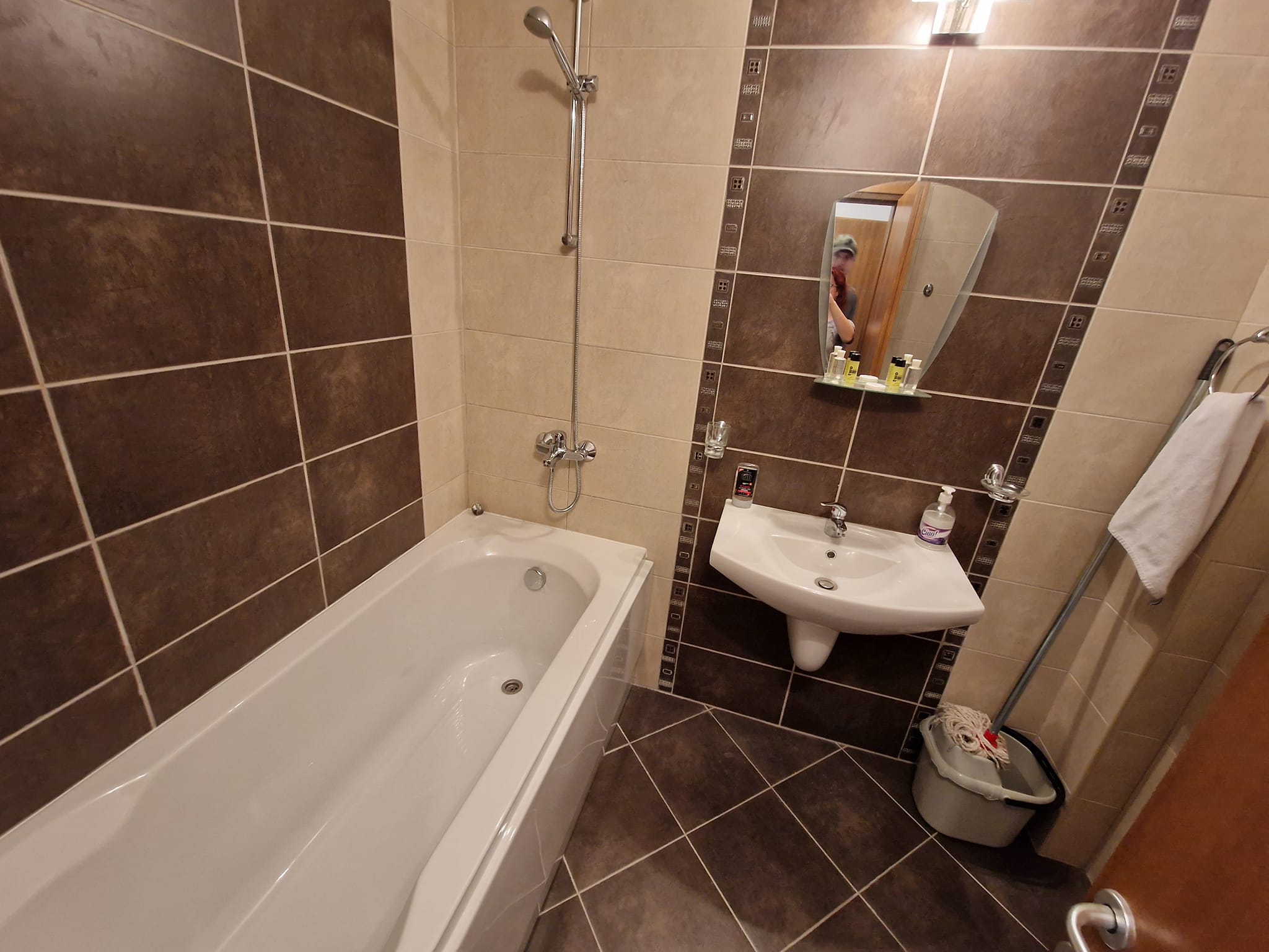 Layout: living room with dining area and kitchenette, separate bedroom, bathroom with toilet and terrace. The property is located on the 4th floor of a 6-story building. East-south exposure! Electric heating. Separate lot for electricity!