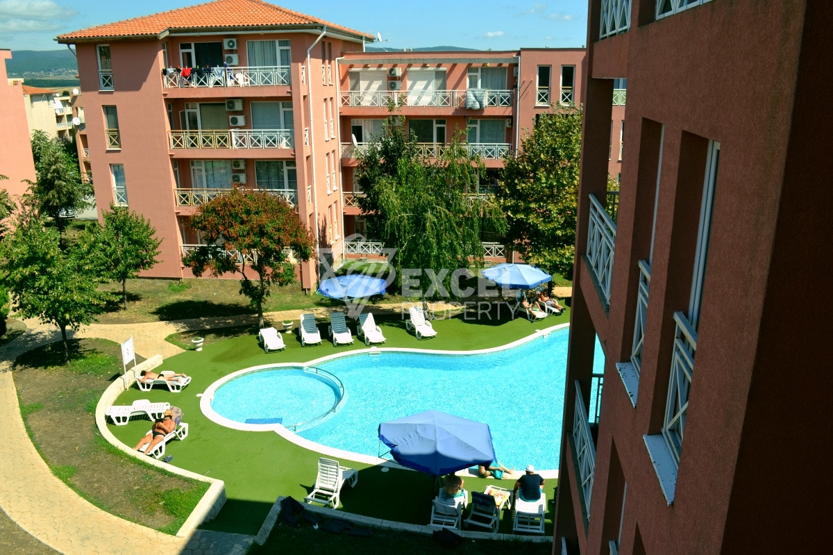 For sale, no commission from the buyer one bedroom property with a total area of 49 m2 /according to documents/, located on the third floor, with a view of the pool, the green areas and the tennis court of Sunny Day 6 complex.