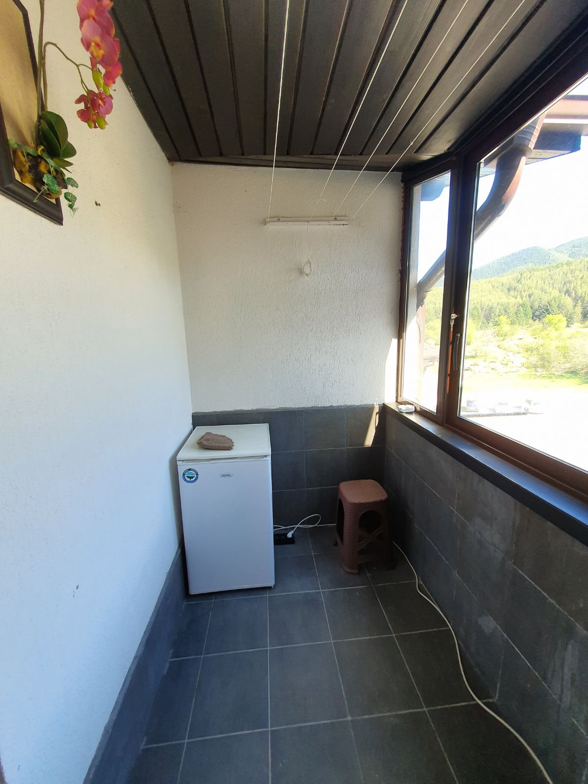 We recommend this holiday apartment, which combines the proximity of the ski lift with peace, quiet and pleasant conditions for relaxation in breathtaking landscapes. The furnished studio is located on the 4th floor with a total area of 49 sq.m. Layout of the room: entrance hall with wardrobe, separate bathroom with toilet, bright living room sofa with TV corner, kitchenette with dining table and chairs, sleeping corner and terrace. The bathroom with toilet has a shower cabin, sink with mirror and water heater. The walls are painted; the windows have PVC joinery, and the flooring is laminate and granite. The complex is open all year round and has staff who take care of the management of the common areas, the garden, the maintenance of the lifts and the pool. It consists of four blocks connected in one building. It is characterized by: