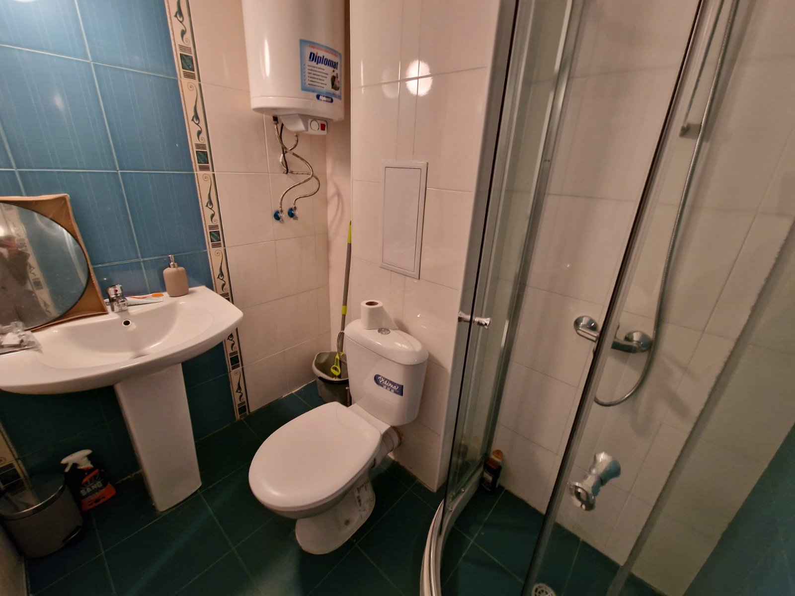 The apartment is located on the fourth floor of a five-story building with an elevator. The layout is: Spacious living room with kitchen area, dining area and relaxation area, northern bedroom with large wardrobe, sunny terrace, corridor, bathroom with toilet and shower cabin. The furnishings are brand new with luxury furniture. The apartment is equipped with everything you need, as follows: boiler, washing machine with dryer, dishwasher, refrigerator, stove, coffee machine, etc.