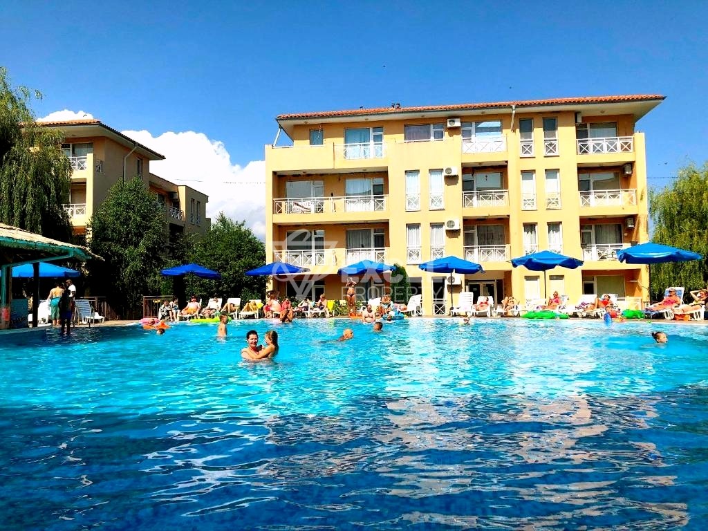 The Sunny Day 6 complex has multiple swimming pools, green areas, two tennis courts, an outdoor gym, a restaurant in the summer with a summer garden, a mini-market, physical security, parking spaces, and an office open year-round. It holds up well.