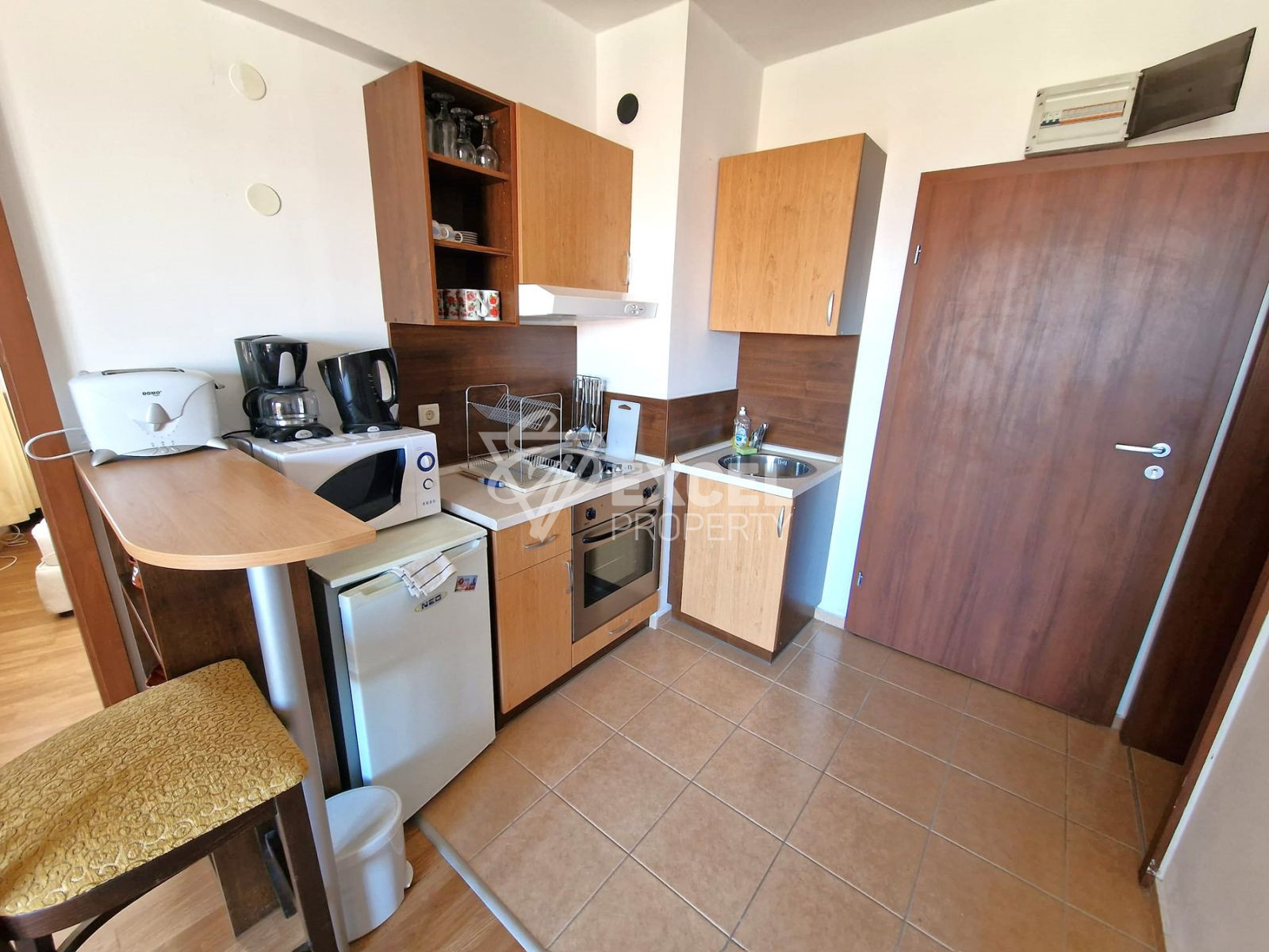 Located on the third floor, the property is distributed with: a living room with a relaxation corner, an equipped kitchen area and a dining area, a bathroom with a toilet, a sunny bedroom and a terrace with a wonderful view of the river and the mountains. It is sold with the available furniture and equipment from the photos. Ready for permanent living or renting.