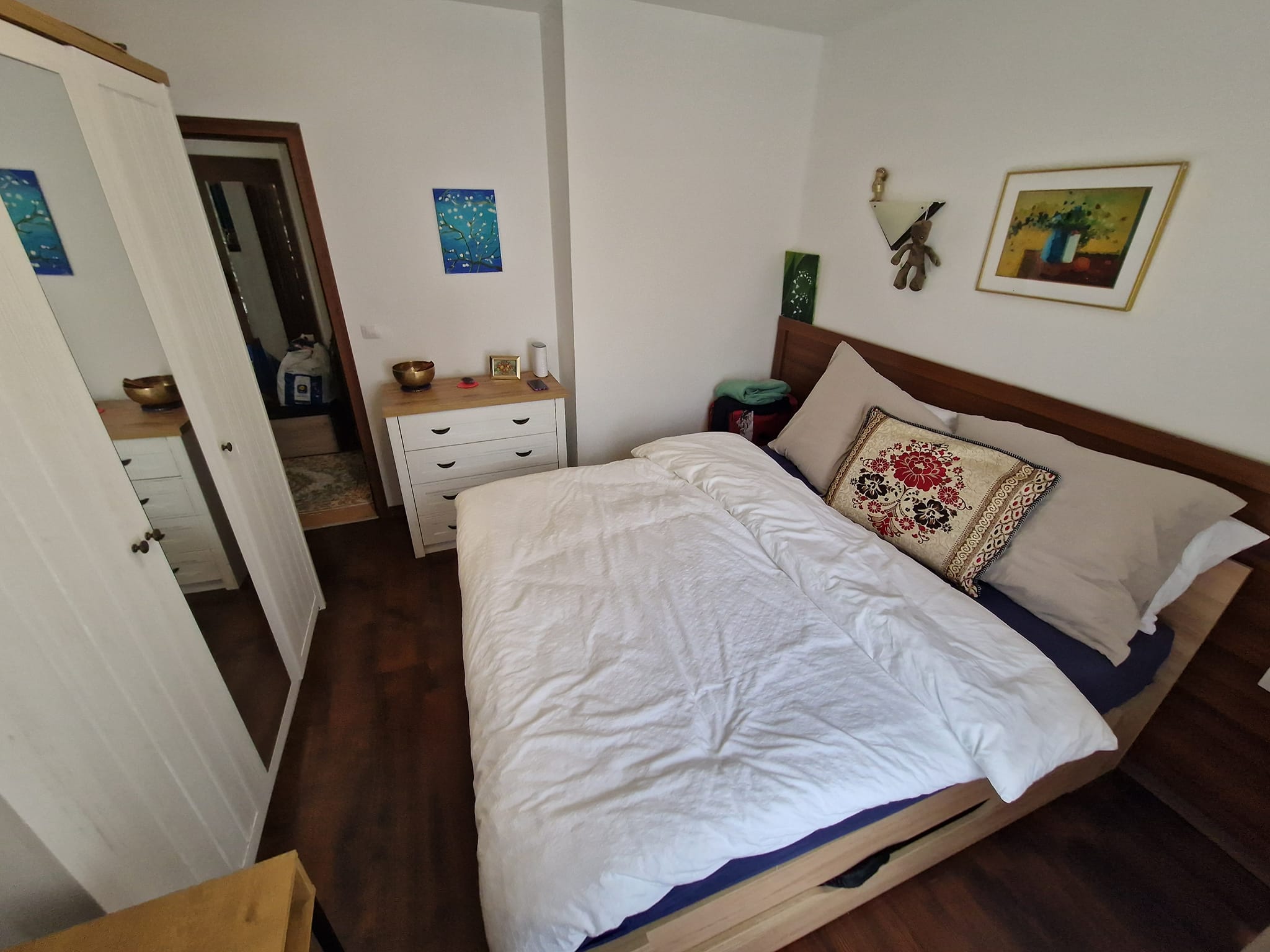 The apartment is located on the third floor with a total area of 68,35 sq.m. Layout: sunny living room with dining area and kitchenette with transition to the bedroom, bathroom with toilet and terrace. It is heated by convector radiators. The exposure of the apartment is south! The property has a separate lot for electricity!