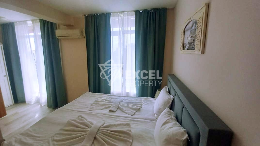 Excel Property offers to your attention two bedroom property in the area of the resort town - Sunny Beach. The panoramic property consists of a living room with sofas and a dining table with 4 chairs, a separate kitchen-type room, a spacious bedroom with bathroom and toilet, a bathroom with toilet with access from the corridor and living room, and another bedroom. The apartment is located on the top sixth floor of the Dawn Park complex and is surrounded by a spacious terrace with impressive panoramic views of Stara Planina and the pool of the Izida Palace 1 complex. The building has an elevator. The terrace is accessible from all rooms, it can be used as a rest area, there is a possibility to place a barbecue. Living area of the property is 92.55 sq.m., common parts - 11.49 sq.m., total area of the property is 104.04 sq.m. The apartment has two air conditioners, two bathrooms and a TV in the living room. The kitchen is separate and has the necessary appliances. The Down Park complex offers the following facilities: a large outdoor swimming pool for adults with a jacuzzi and underwater massage beds, a pool bar, a children's pool, a children's club, a restaurant with a spacious terrace overlooking the pool and a terrace facing the street, a lobby bar, reception, office and parking . The complex is located in the quiet part of Sunny Beach, in close proximity to the aqua park and only a 10-minute walk from the center of the resort and the beach. The complex has a permit for use /Act 16/, it functions all year round.