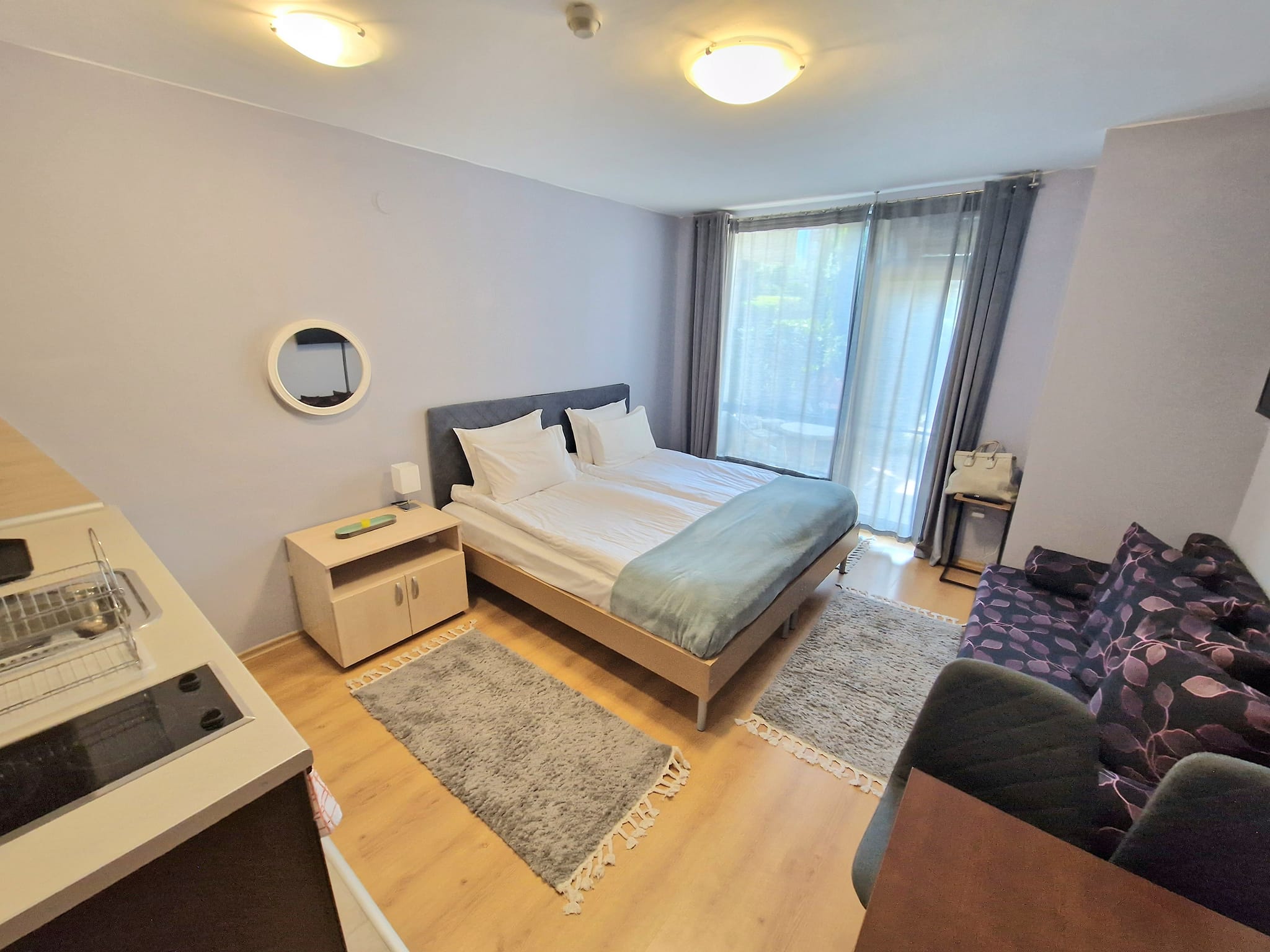 We present to your attention a spacious south-facing studio for sale in the year-round Aspen Golf complex, next to Pirin Golf. The property is located on the ground floor and has an entrance hall, a spacious living room with an equipped kitchen area, a bathroom with a toilet and a veranda (terrace)! Electric heating is provided. The property has a separate lot for electricity.
