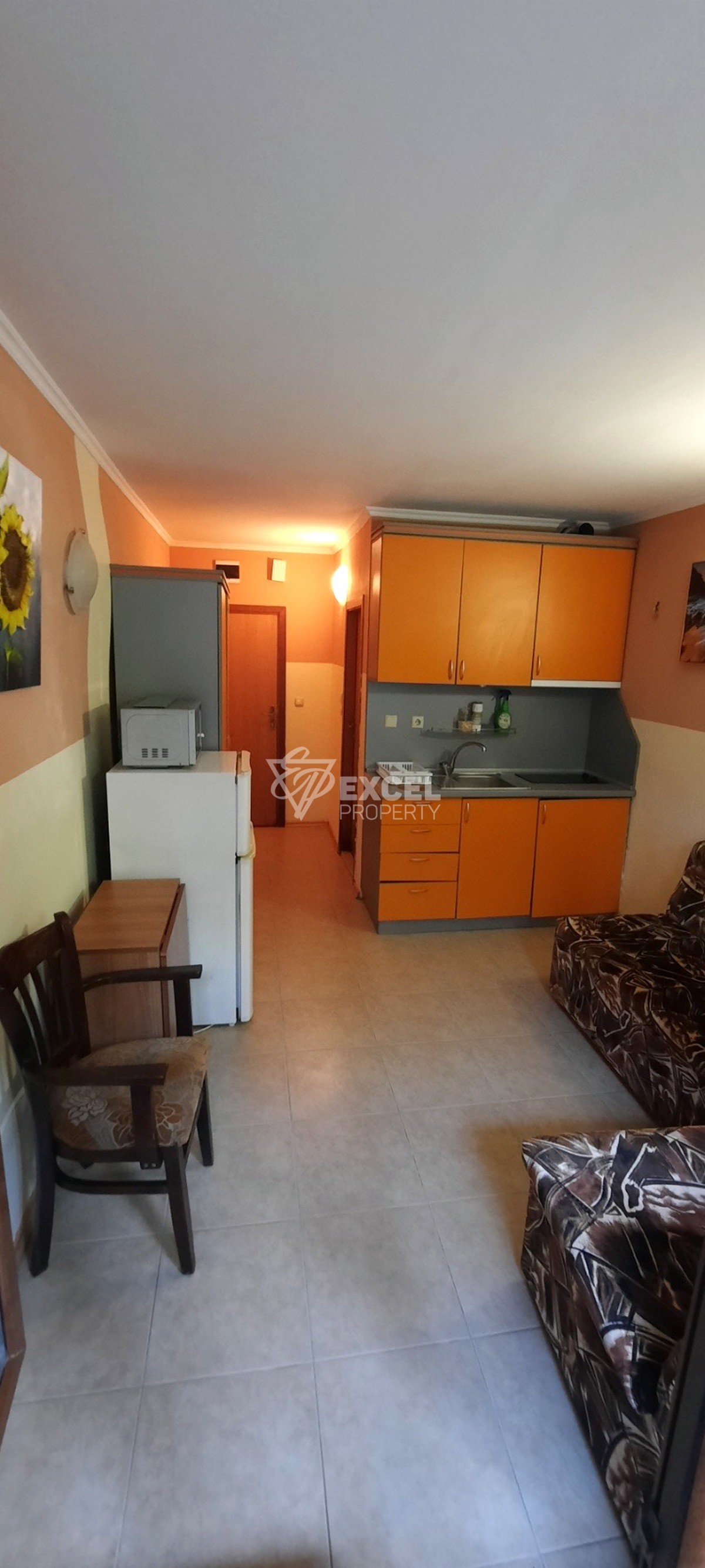 We offer you a furnished studio located in a quiet and peaceful place in the most attractive part of Sunny Beach. The total area of the property is 27 square meters and it is located on the ground floor. Separate lots for electricity and water. The maintenance fee is BGN 500 per year. The apartment is suitable for year-round living. It offers a pleasant view of the greenery of the inner courtyard. Pasific is an elite building designed by a leading Bulgarian architect. The complex offers its guests and apartment owners a restaurant, bar, sauna, as well as bicycle rental, darts and table tennis for an additional fee, lawn maintenance, swimming pool, cleaning, rental and trust management. Physical security is available 24/7 to control access to the building and a yard with lots of flowers and greenery.