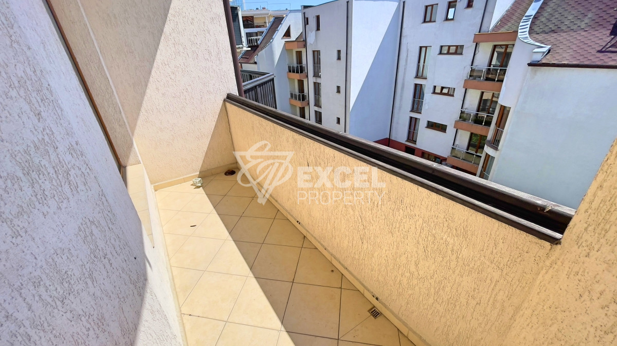 Excel Property offers for sale a two-bedroom apartment for year-round use in Sveti Vlas. The property is located in Shipka complex, just 200 meters from the beach. It is located on the fourth floor and has a total area of 98 sq m. The space is divided between an entrance hall, a spacious living room with a kitchenette, two bedrooms, two balconies, a bathroom and a separate toilet. The furniture includes a sofa bed, a coffee table, a dining table with four chairs, a TV cabinet and a kitchen with all appliances such as an oven, hob, refrigerator and extractor. In the master bedroom you will find a double bed with bedside tables, a wardrobe and a chest of drawers and an access to one balcony. The small bedroom has two single beds with bedside tables and a wardrobe. The balcony to the living room is very large, has outdoor furniture and sea view. There are three air conditioners and a TV in the living room, it is ready for rental or for use by the new owners. The building is intended for year-round use, the elevator also works in winter. The complex has AKT 16 and has a swimming pool and an area for sun loungers and umbrellas. The maintenance fee is 10 Euro/m2.