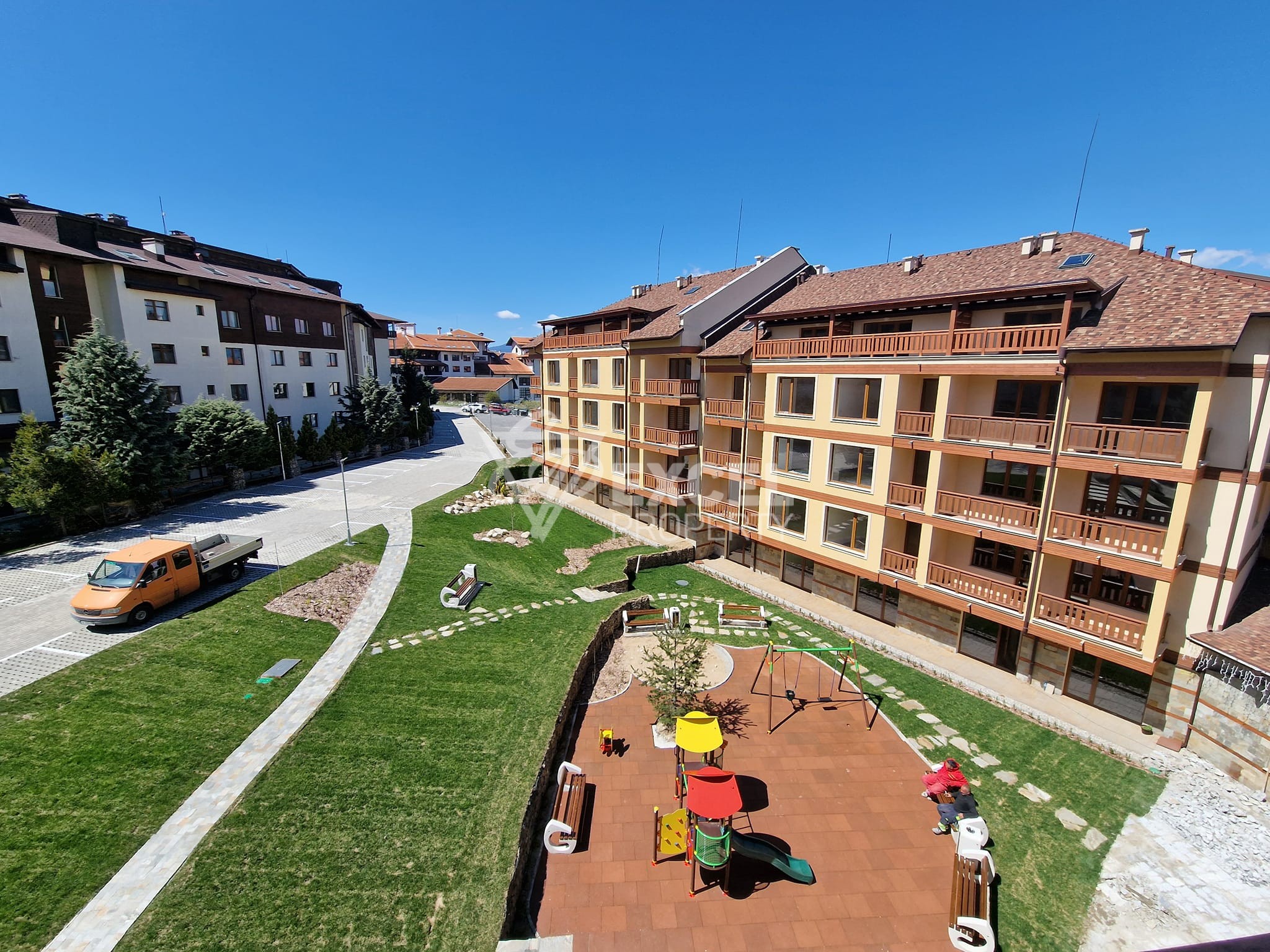 A children's playground, lawns and paid parking are available to owners and guests.